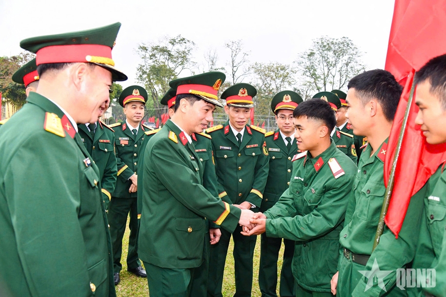 Đại tá Lâm Dũng Tiến, Chính ủy Sư đoàn 316 (Quân khu 2) động viên cán bộ, chiến sĩ Trung đoàn 148 nhân dịp Tết Nguyên đán Bính Ngọ 2026.