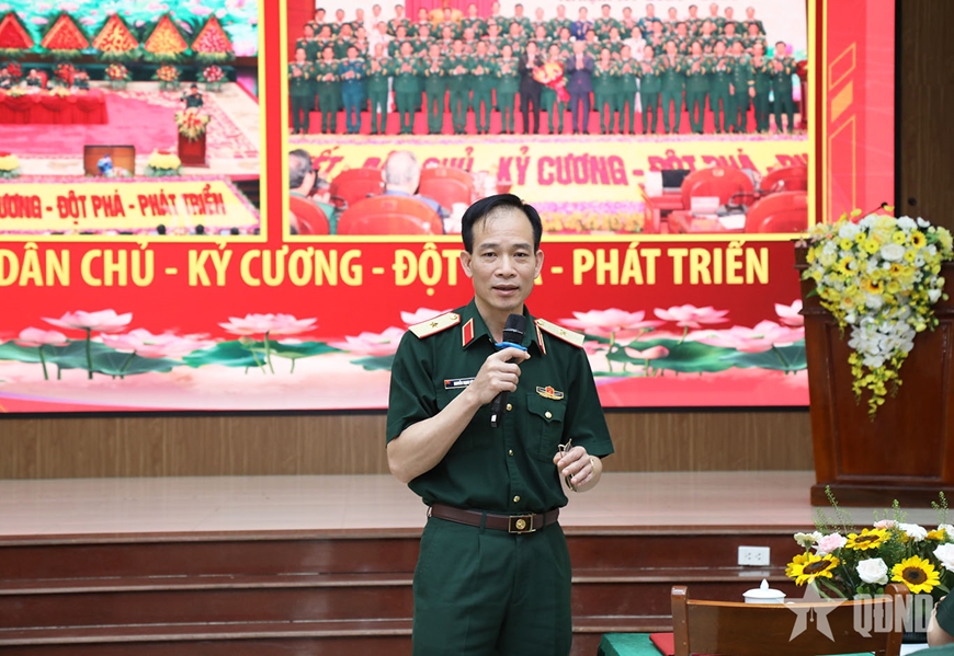 | Đại tá Lê Đăng Dũng, Bí thư Đảng ủy, Phó cục trưởng Cục Kỹ thuật quân, binh chủng phát biểu chỉ đạo tại hội thi. |