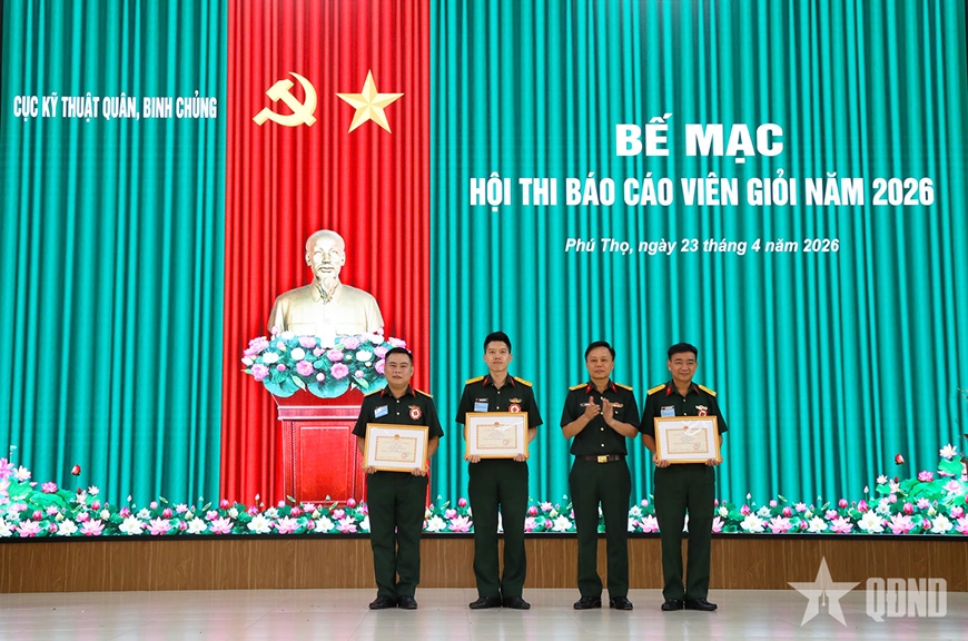Kết thúc Hội thi, Ban tổ chức đã trao 3 giải Nhất, 3 giải Nhì, 4 giải Ba cho các thí sinh đạt thành tích cao; đồng thời lựa chọn các đồng chí tiêu biểu tham gia Hội thi báo cáo viên giỏi cấp Tổng cục Hậu cần - Kỹ thuật năm 2026.