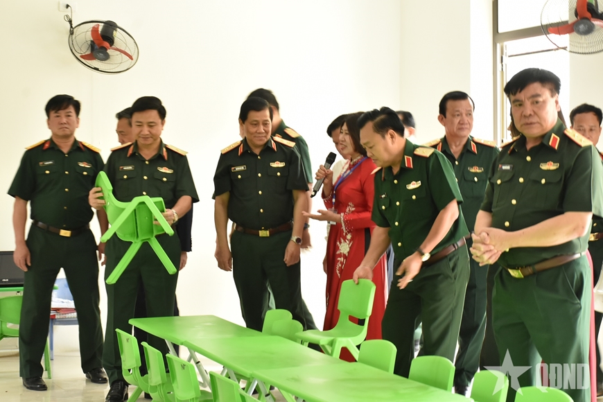 Khối thi đua số 2 Bộ Quốc phòng tặng điểm trường Ta Niết các trang thiết bị phục vụ học tập và sinh hoạt. |