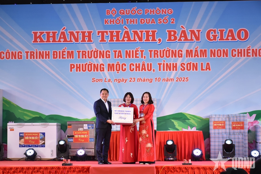 Tại buổi lễ khánh thành và bàn giao, Khối thi đua số 2 Bộ Quốc phòng tặng điểm trường Ta Niết các trang thiết bị phục vụ học tập và sinh hoạt; tỉnh Sơn La tặng quà nhà trường và các cháu học sinh.