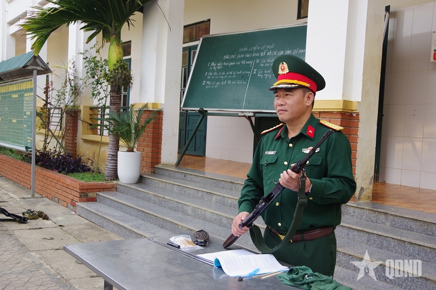 | Đại tá Chu Văn Thành thị phạm huấn luyện công tác kỹ thuật cho chiến sĩ mới. |