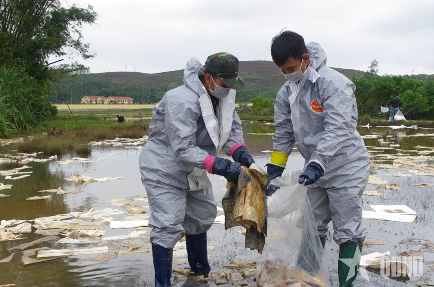 Ngay sau khi xảy ra sự việc, Cục Xăng dầu, Lữ đoàn 88 (Binh chủng Hóa học), Trung tâm SOS miền trung, Trung tâm xử lý khắc phục sự cố tràn dầu Việt Nam cùng các đơn vị, chính quyền địa phương đã điều động gần 300 cán bộ, chiến sĩ với nhiều máy móc, thiết bị, phương tiện chuyên dụng, hiện đại khẩn trương khoanh vùng, cô lập khu vực ô nhiễm; triển khai thu gom, xử lý dầu tràn ngoài vùng sản xuất, hệ thống mương, sông và khu vực nuôi trồng thủy sản quy mô nhỏ của người dân. Quá trình thực hiện bảo đảm an toàn lao động, an toàn môi trường không để xảy ra sự cố thứ cấp.