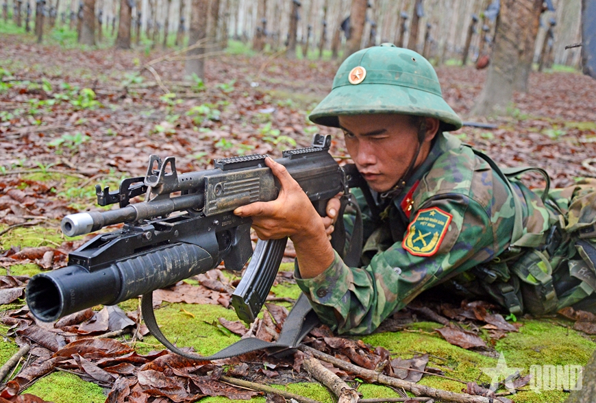 | Chiến sĩ Trung đoàn 28, Sư đoàn 10 thực binh bắn đạn hơi.  |