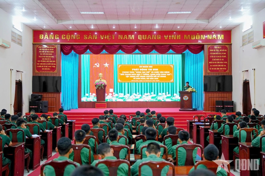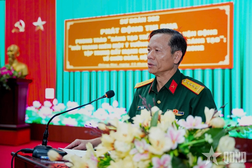| Đại tá Vũ Đức Hiến, Sư đoàn trưởng Sư đoàn 302 phát biểu tại buổi phát động phong trào. |
