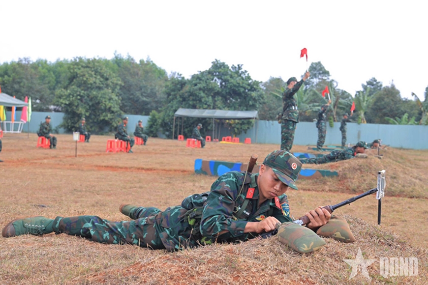 | Chiến sĩ mới thực hành lắp đạn chuẩn bị lên tuyến bắn. |