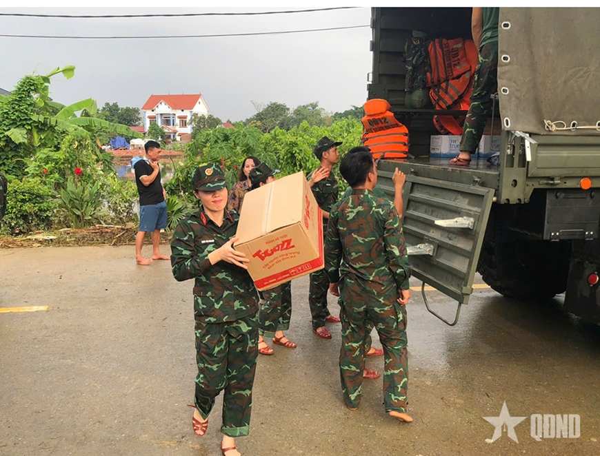 Trước tình hình nước lũ rút chậm, nhiều khu vực tại xã Trung Giã, TP Hà Nội vẫn bị chia cắt, cô lập, Sư đoàn 312 (Quân đoàn 12) chỉ đạo Trung đoàn 141 nhanh chóng tổ chức lực lượng bảo đảm hậu cần tại chỗ, phối hợp cùng địa phương triển khai các hoạt động cứu trợ, giúp nhân dân khắc phục khó khăn.
