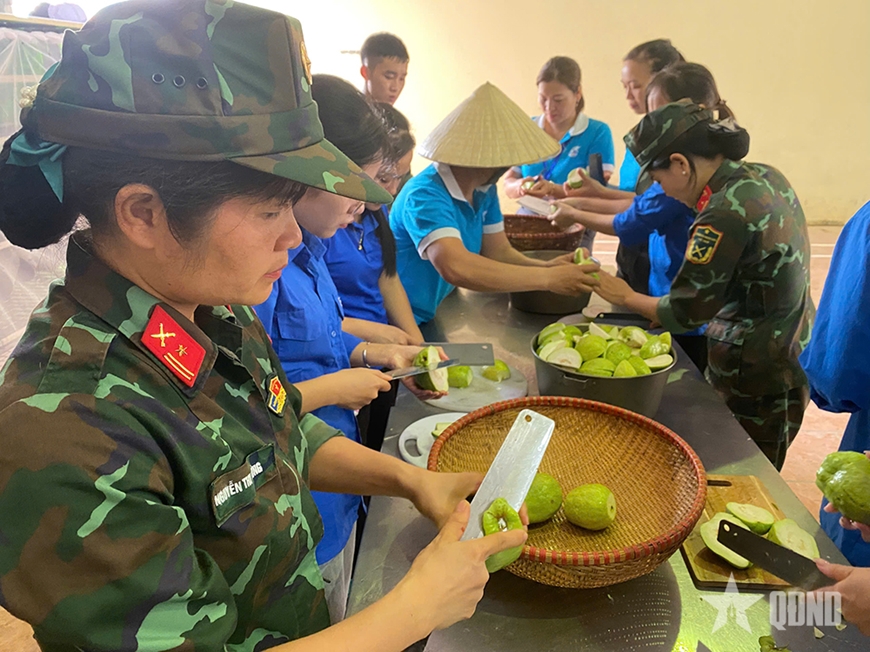 Từ rạng sáng 11-10, các cán bộ, chiến sĩ cùng hội viên Hội Phụ nữ và Đoàn Thanh niên, các cô giáo Trường Mầm non Bắc Sơn B đã chuẩn bị hàng trăm suất ăn nóng hổi, chuyển đến tận nơi cho các hộ dân đang bị cô lập.