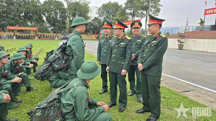 | Lãnh đạo Sư đoàn 316 động viên chiến sĩ mới nhập ngũ tại Trung đoàn 98. |