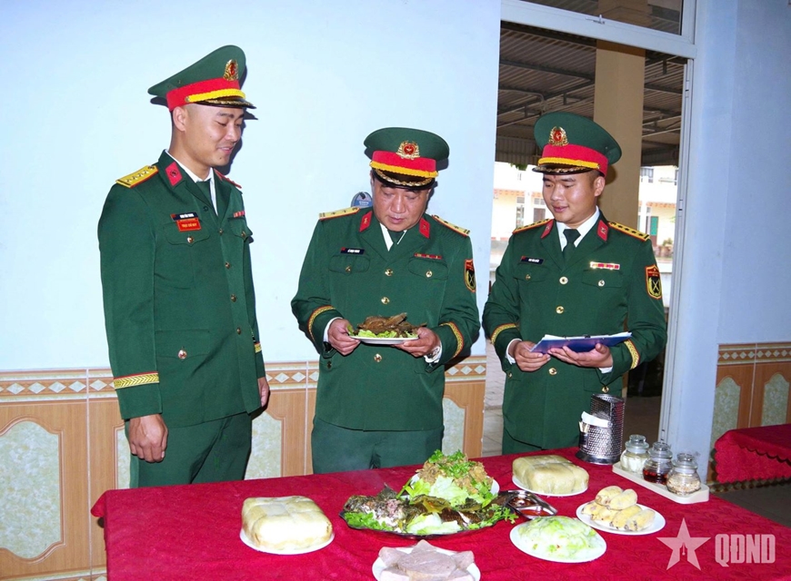 | Chỉ huy đơn vị kiểm tra bữa ăn Tết của bộ đội. |