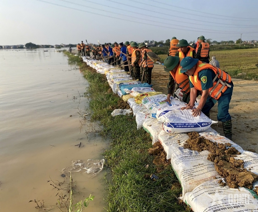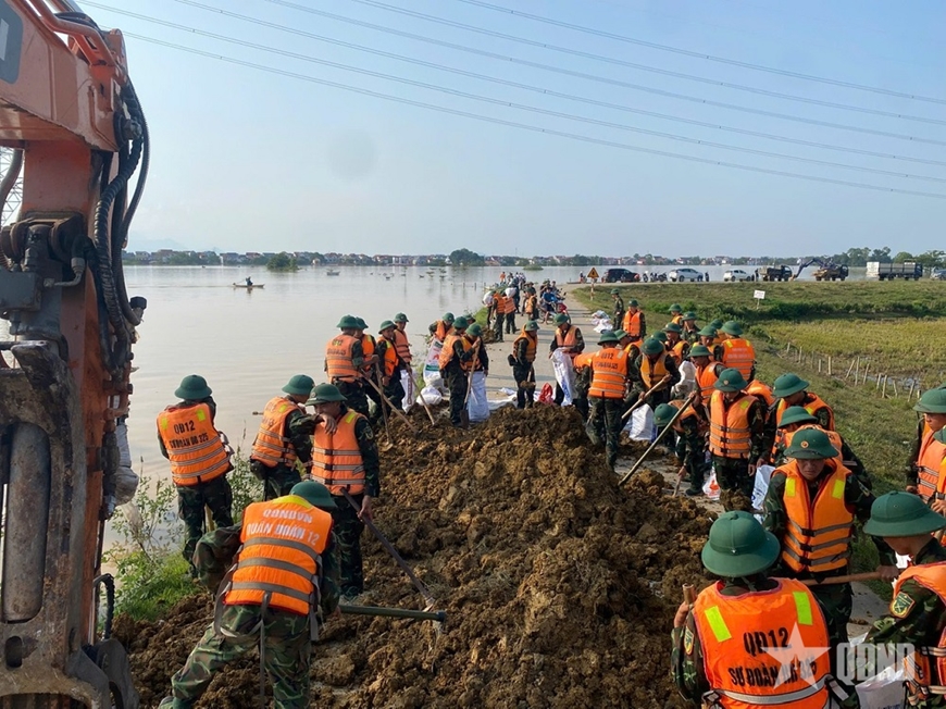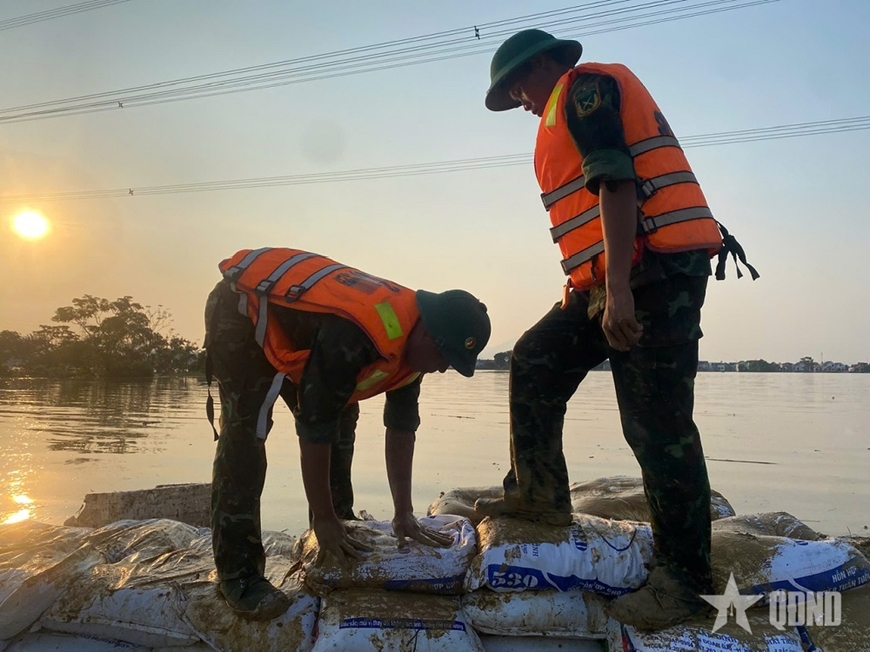 Ngay sau khi cơ động đến vị trí, không quản ngại thời tiết khắc nghiệt, cán bộ, chiến sĩ Sư đoàn 325 đã khẩn trương phối hợp cùng chính quyền và nhân dân địa phương hộ đê, gia cố, đắp cao những điểm xung yếu, quyết tâm không để nước tràn, bảo vệ an toàn tính mạng và tài sản cho nhân dân vùng hạ lưu. Trong chiều nay, đơn vị đã hoàn thành gia cố hơn 3km đê, xử lý chống tràn, chống lún tại 4 vị trí xung yếu, góp phần giữ vững an toàn tuyến đê trước mực nước dâng cao.