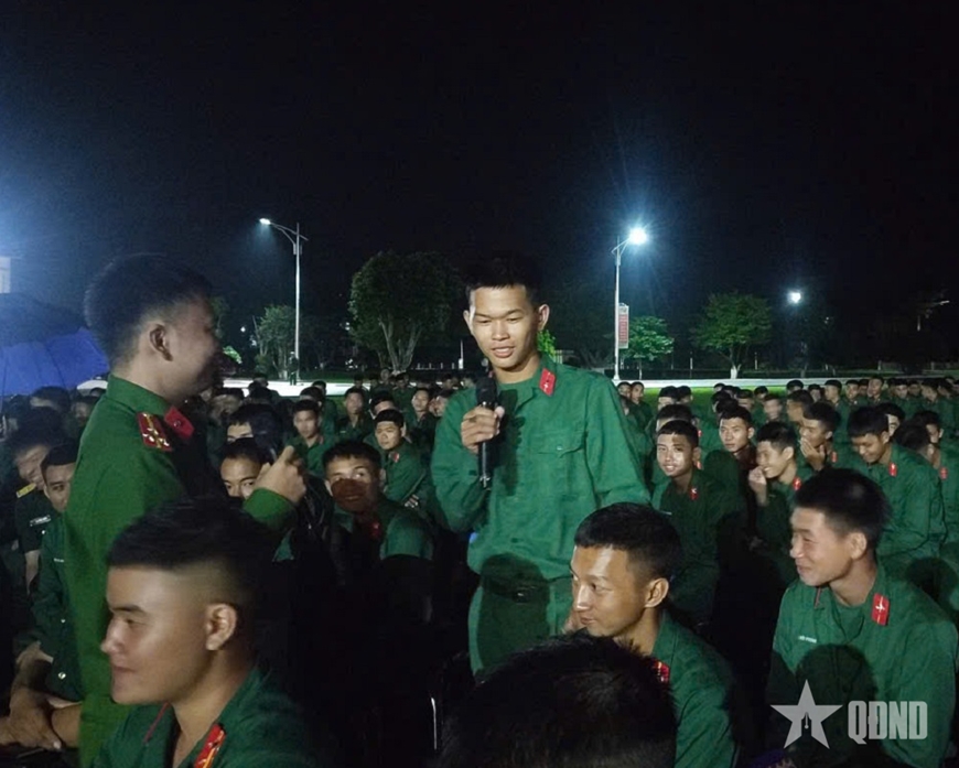 | Các báo cáo viên của công an địa phương trao đổi với các chiến sĩ Sư đoàn 325. |