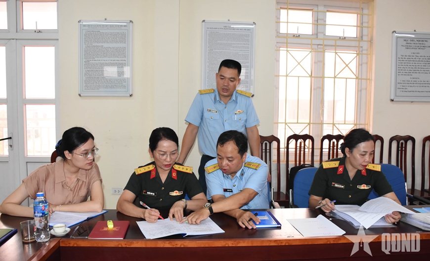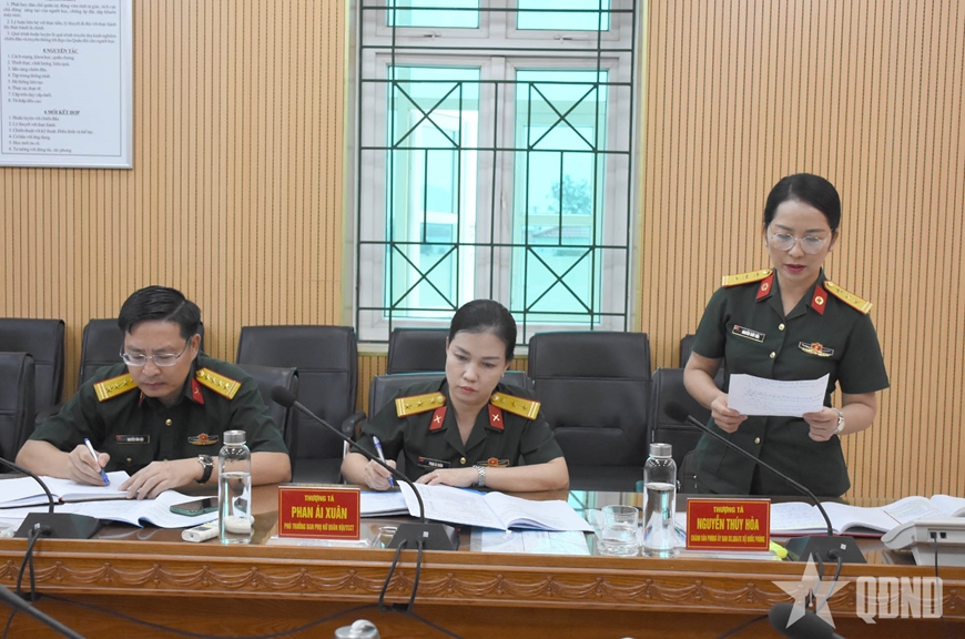 Thượng tá Nguyễn Thúy Hòa, Chánh Văn phòng Ủy ban Dân số, Gia đình và Trẻ em Bộ Quốc phòng báo cáo kết quả kiểm tra. |
