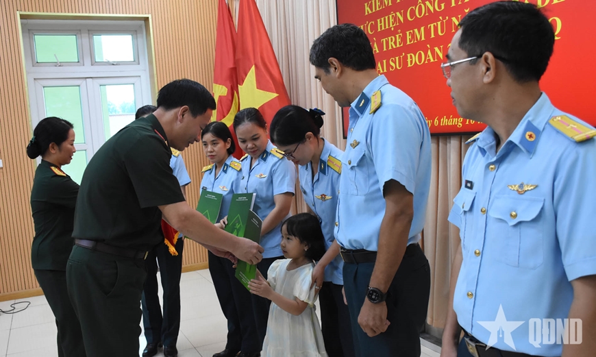 Dịp này, Ủy ban DS,GD&TE Bộ Quốc phòng trao 5 phần quà tặng 5 cháu có hoàn cảnh đặc biệt là con quân nhân đang công tác tại đơn vị.
