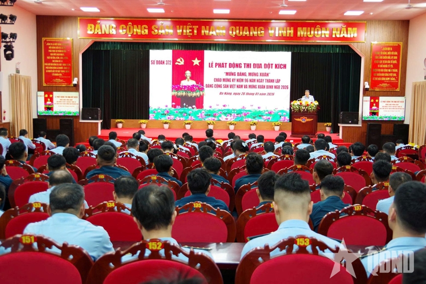 Chiều 26-1, Sư đoàn 372 (Quân chủng Phòng không-Không quân) phát động đợt thi đua đột kích “Mừng Đảng, mừng xuân” chào mừng kỷ niệm 96 năm Ngày thành lập Đảng Cộng sản Việt Nam và đón Xuân Bính Ngọ năm 2026.