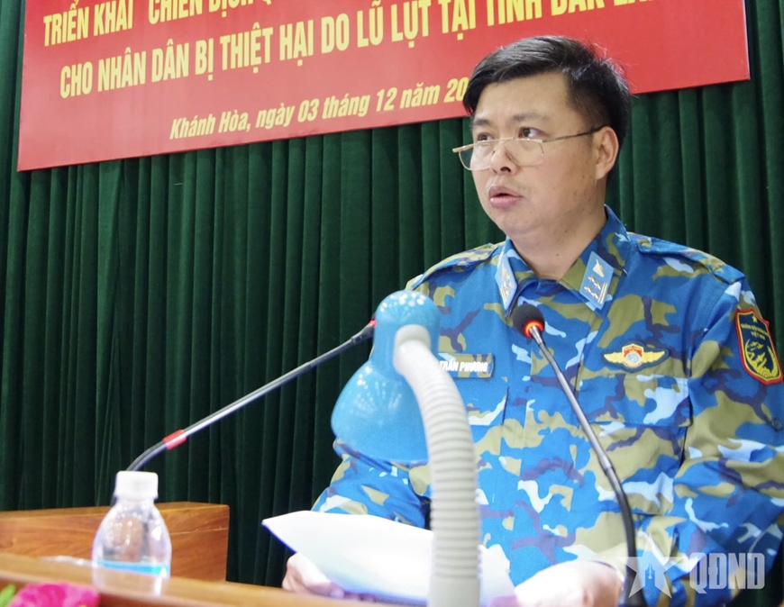 | Đại tá Lê Trần Phương giao nhiệm vụ cho cán bộ, chiến sĩ. |