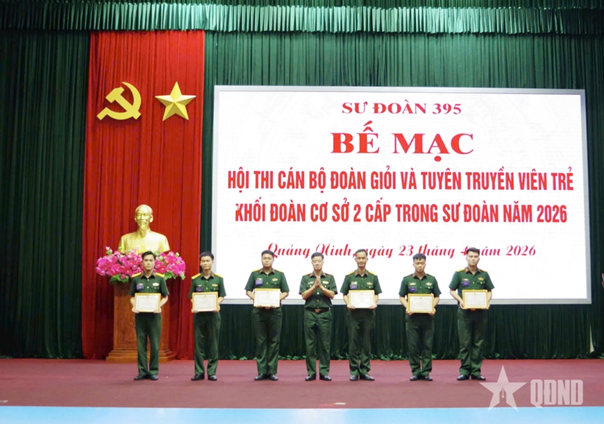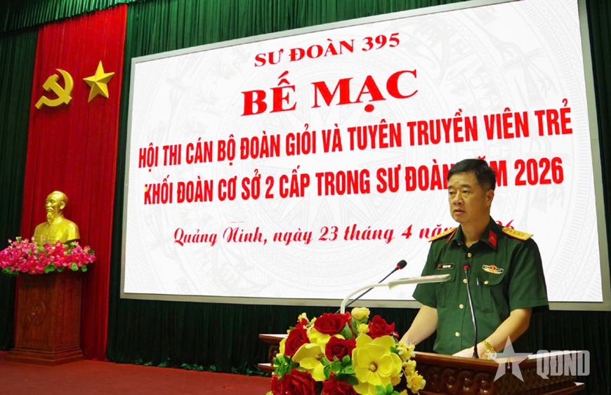 Ngày 23-4, Sư đoàn 395, Quân khu 3 tổ chức bế mạc Hội thi cán bộ Đoàn giỏi và tuyên truyền viên trẻ khối Đoàn cơ sở 2 cấp trong Sư đoàn năm 2026. Đại tá Đỗ Trung Kiên, Phó chính ủy Sư đoàn 395 dự và chỉ đạo bế mạc.
