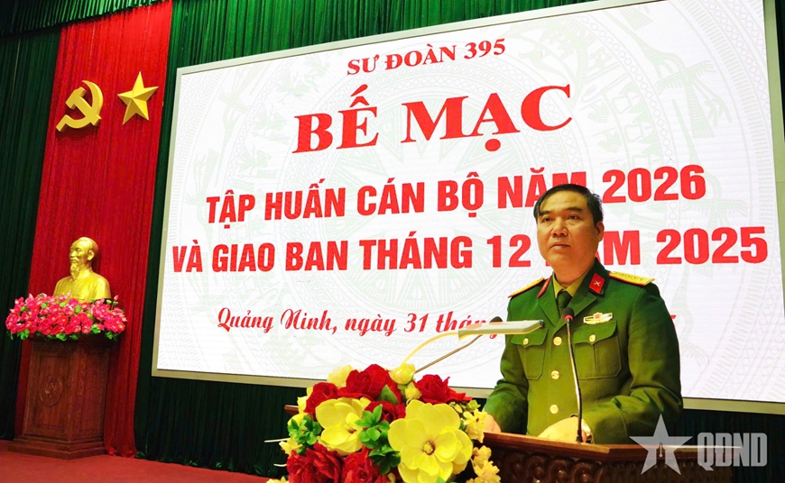 | Đại tá Nguyễn Huy Toàn, Sư đoàn trưởng Sư đoàn 395 trao thưởng cho các tập thể có thành tích xuất sắc trong thực hiện nhiệm vụ tập huấn cán bộ năm 2026. |