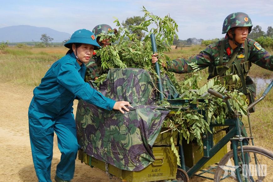 Chiến sĩ Sư đoàn 5 cùng chiến sĩ dân quân TP Hồ Chí Minh phối hợp tải đạn, vật chất trong diễn tập.