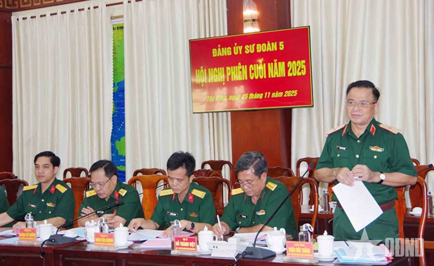 Năm 2025, Đảng ủy, chỉ huy Sư đoàn 5 và cấp ủy, chỉ huy các cấp đã phát huy dân chủ, đoàn kết, thống nhất; quán triệt và thực hiện nghiêm nghị quyết, chỉ thị, mệnh lệnh của cấp trên; hoàn thành toàn diện nhiệm vụ chính trị.