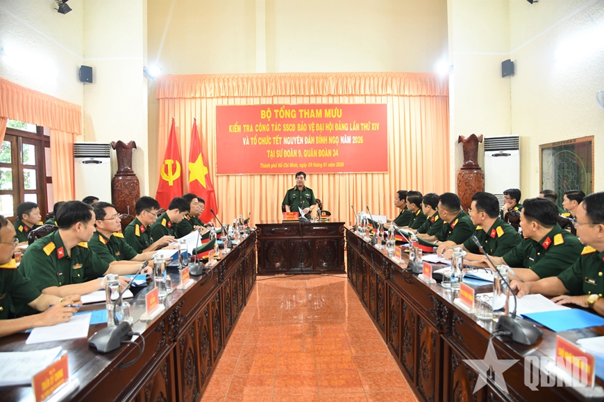 Tại buổi kiểm tra, đoàn đã nghe chỉ huy Sư đoàn 9 báo cáo kết quả công tác SSCĐ, phương án bảo vệ Đại hội XIV của Đảng, kế hoạch trực SSCĐ dịp Tết Nguyên đán Bính Ngọ 2026; công tác giáo dục chính trị, tư tưởng; duy trì nền nếp chính quy, quản lý kỷ luật; bảo đảm hậu cần, kỹ thuật cho nhiệm vụ thường xuyên và đột xuất.