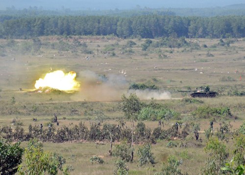 Xe tăng Lữ đoàn 22 tiêu diệt mục tiêu địch.