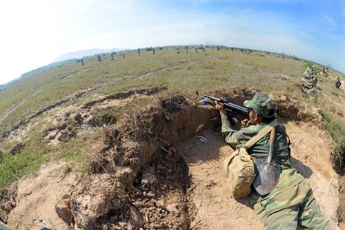 Ngày 23-11, tại Trường bắn Quốc gia Khu vực 3, Sư đoàn 9 (Quân đoàn 4) phối hợp với một số đơn vị đã tổ chức diễn tập chiến thuật có bắn đạn thật cho tiểu đoàn bộ binh với đề mục “Tiểu đoàn bộ binh được tăng cường phòng ngự ở khu vực điểm cao”.