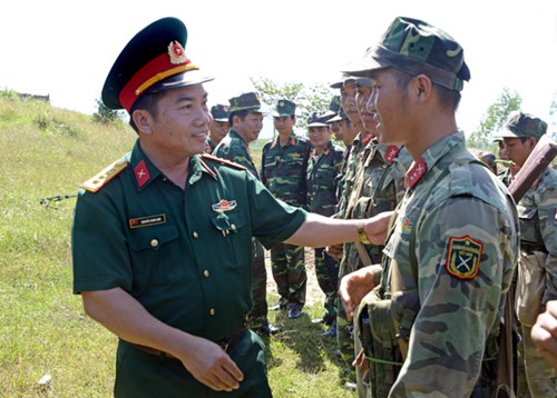 Đại tá Nguyễn Xuân Sơn, Chính ủy Quân đoàn 4, động viên bộ đội đã hoàn thành tốt nhiệm vụ diễn tập.