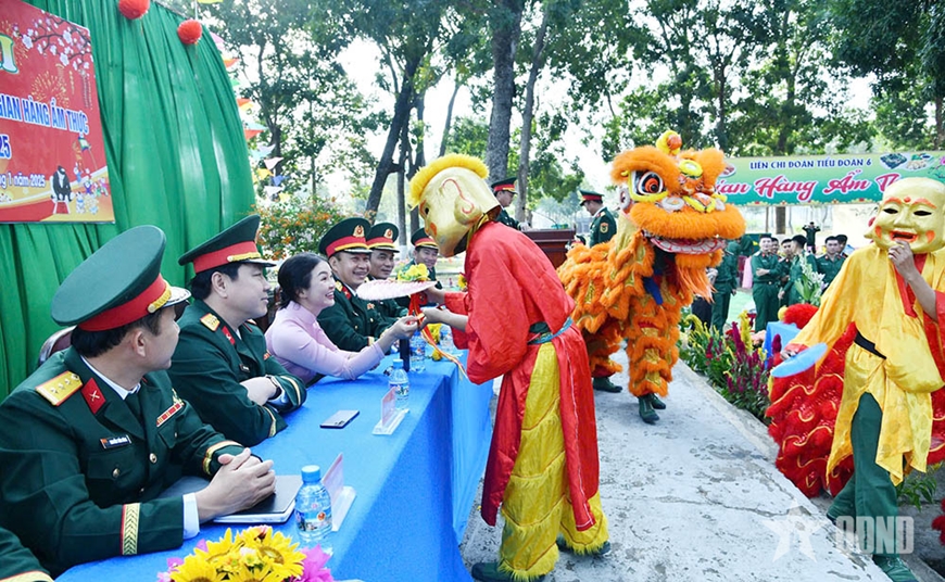 | Các chiến sĩ trổ tài múa lân mang đến niềm vui trong dịp đầu Xuân. |