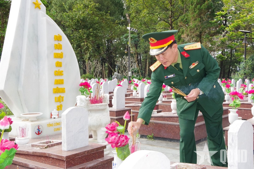 Dịp này, đoàn cũng đã đến dâng hoa, dâng hương tưởng nhớ, tri ân các chiến sĩ đã hy sinh khi thực hiện nhiệm vụ giúp dân khắc phục hậu quả thiên tai, cứu hộ cứu nạn tại Thủy điện Rào Trăng 3 (TP Huế) và Đoàn kinh tế - Quốc phòng 337 (Quân khu 4) được an táng tại Nghĩa trang Liệt sĩ Quốc gia Đường 9.