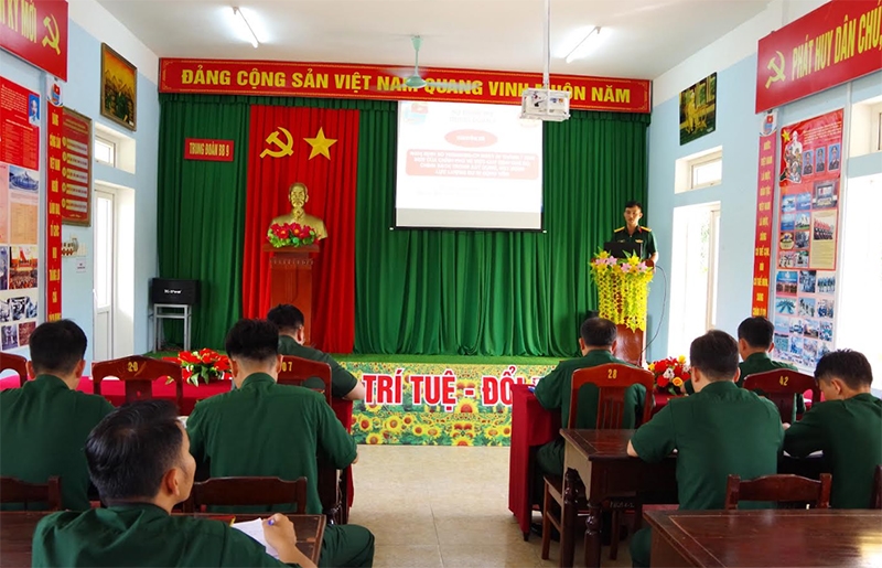 | Kiểm tra giáo án giảng dạy chính trị của Chính trị viên Tiểu đoàn 7, Trung đoàn 9. |