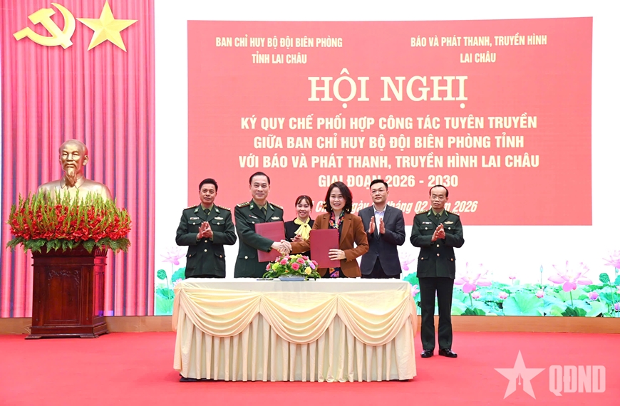 | Lễ ký kết Quy chế phối hợp công tác tuyên truyền giữa Ban chỉ huy BĐBP tỉnh Lai Châu với Báo và Phát thanh, Truyền hình Lai Châu. |