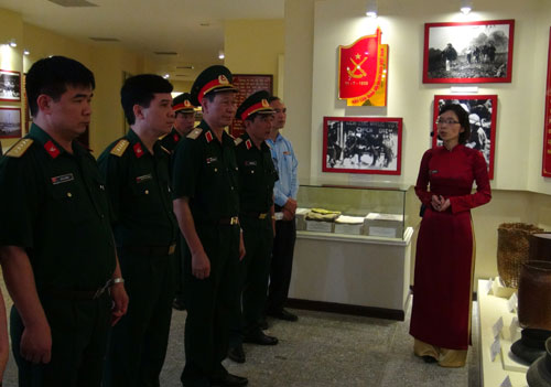 | Trung tướng Nguyễn Vính Phú (thứ 3 từ trái sang) và đoàn công tác kiểm tra công tác trưng bày của Bảo tàng Hậu cần. |