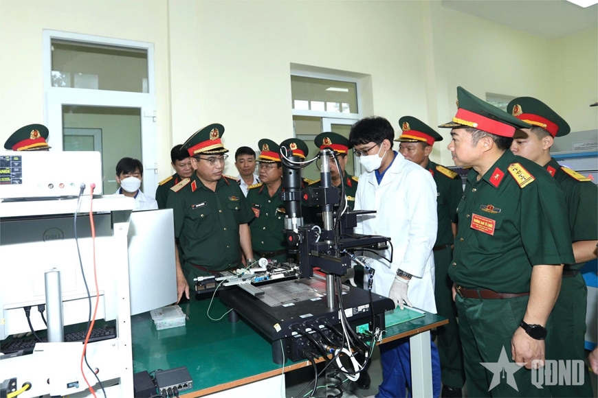 Các đại biểu tham quan khu kỹ thuật và dây chuyền nâng cấp, cải tiến tổ hợp tên lửa chống tăng B-72 ở Kho KT788. |