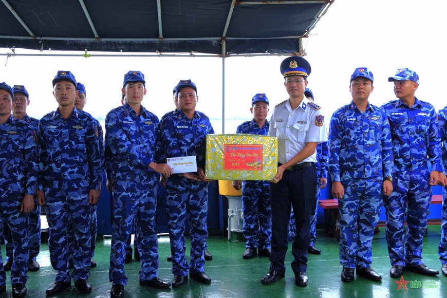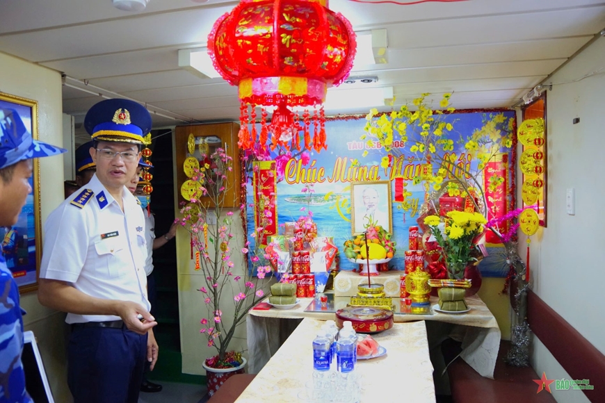 Đại tá Cao Xuân Quận yêu cầu cán bộ, chiến sĩ toàn Tàu nêu cao ý chí quyết tâm, khắc phục mọi khó khăn, hoàn thành xuất sắc nhiệm vụ trực trước, trong và sau Tết Nguyên đán Ất Tỵ 2025; duy trì nghiêm nền nếp, chế độ trực, SSCĐ và chủ động, linh hoạt trong thực hiện các nhiệm vụ tuần tra, kiểm soát, bảo đảm an ninh, an toàn tuyến biển, tuần tra, kiểm tra, kiểm soát, phòng, chống khai thác IUU; sẵn sàng thực hiện nhiệm vụ cứu hộ, cứu nạn, giúp đỡ ngư dân làm ăn trên biển trong dịp Tết, góp phần bảo vệ chủ quyền biển, đảo, giữ gìn sự bình yên cho Tổ quốc, để nhân dân được vui xuân, đón Tết bình an, hạnh phúc. Cùng với đó, cán bộ, chỉ huy Tàu cần quan tâm chăm lo đời sống tinh thần, vật chất để anh em đón Tết trên biển ấm áp, vui tươi, an toàn.