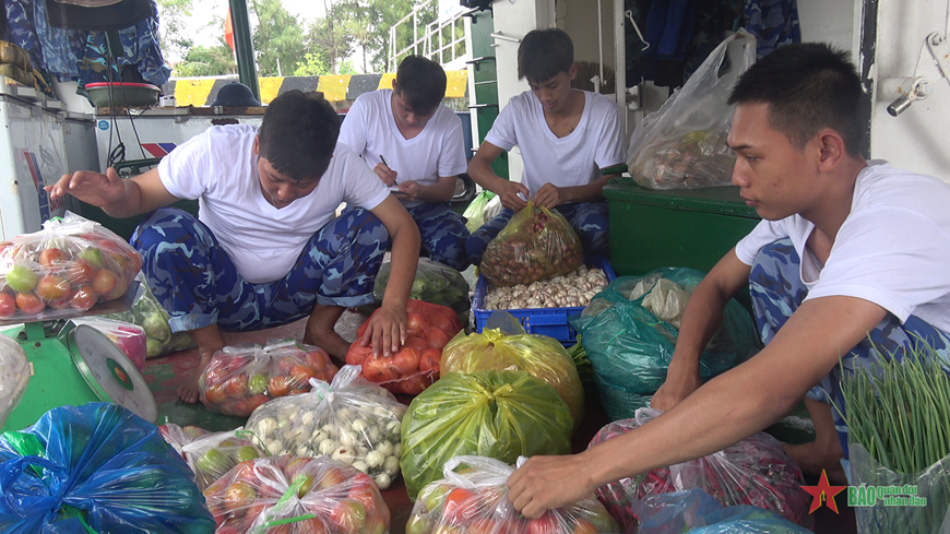 Cán bộ, chiến sĩ chuẩn bị nhu yếu phẩm sẵn sàng cho chuyến trực Tết dài ngày trên biển. |