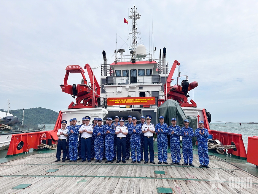 Trước giờ tàu nhổ neo, đoàn công tác Bộ tư lệnh Vùng Cảnh sát biển 4 do Thiếu tướng Đào Bá Việt, Tư lệnh Vùng làm trưởng đoàn đã trực tiếp xuống tàu kiểm tra công tác chuẩn bị và gặp gỡ, động viên cán bộ, chiến sĩ.