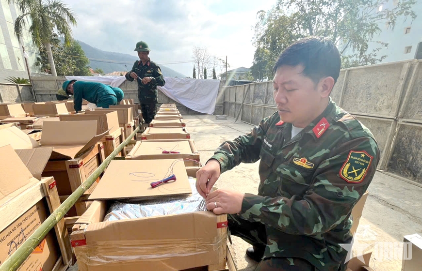 Tại xã biên giới xa xôi nhất, Trung tá Lê Văn Tài, Chỉ huy trưởng Ban CHQS xã Mường Lát cho biết: Đến 15 giờ hôm nay (16-2) mọi công tác chuẩn bị cho đêm bắn pháo hoa tại xã Mường Lát đã hoàn tất. Chúng tôi đã huy động 100% quân số phối hợp chặt chẽ với lực lượng công an, điện lực, y tế của địa phương cùng với lực lượng công an, dưới sự chỉ đạo, hướng dẫn trực tiếp về chuyên môn, kỹ thuật của cán bộ Bộ CHQS Thanh Hóa tăng cường, tổng quân số hơn 30 đồng chí hoàn thành mọi công tác chuẩn bị, đảm bảo cho lần đầu tiên pháo hoa tầm thấp được tổ chức bắn tại xã biên giới Mường Lát.