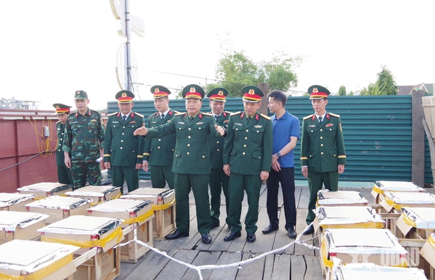 | Đại tá Nguyễn Trọng Nhị, Phó chỉ huy trưởng, Tham mưu trưởng Bộ CHQS tỉnh Thanh Hóa kiểm tra công tác chuẩn bị tại phường Hạc Thành. |
