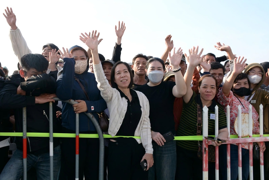 | Người thân, gia đình bịn rịn chia tay các thanh niên lên đường nhập ngũ. |