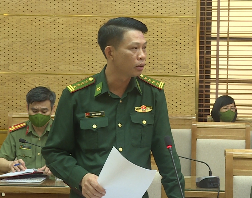 | Đại tá Phan Hữu Tiếp, Trưởng phòng Cục Cửa khẩu – Bộ tư lệnh Bộ đội Biên phòng phát biểu ý kiến. |