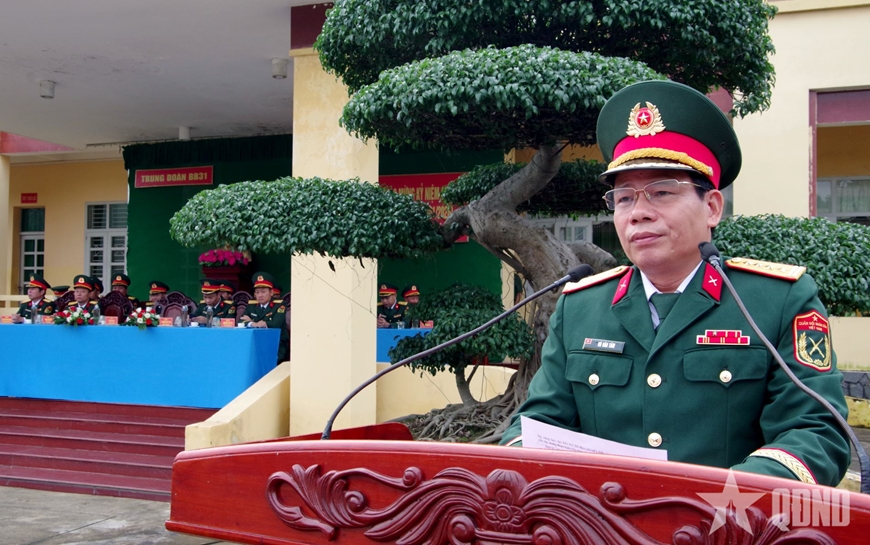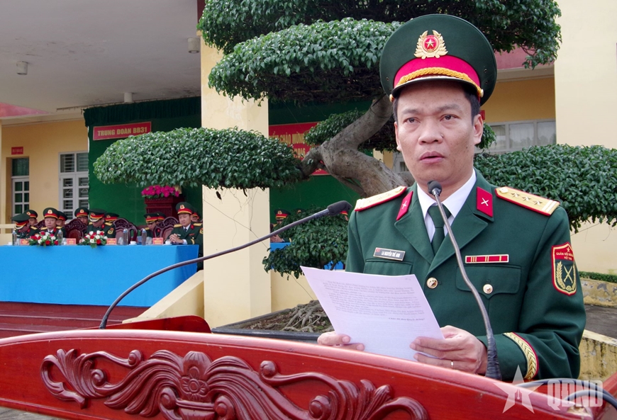 | Thượng tá La Nguyễn Thế Anh, Bí thư Đảng ủy, Chính ủy Trung đoàn 31 phát phát động đợt thi đua. |