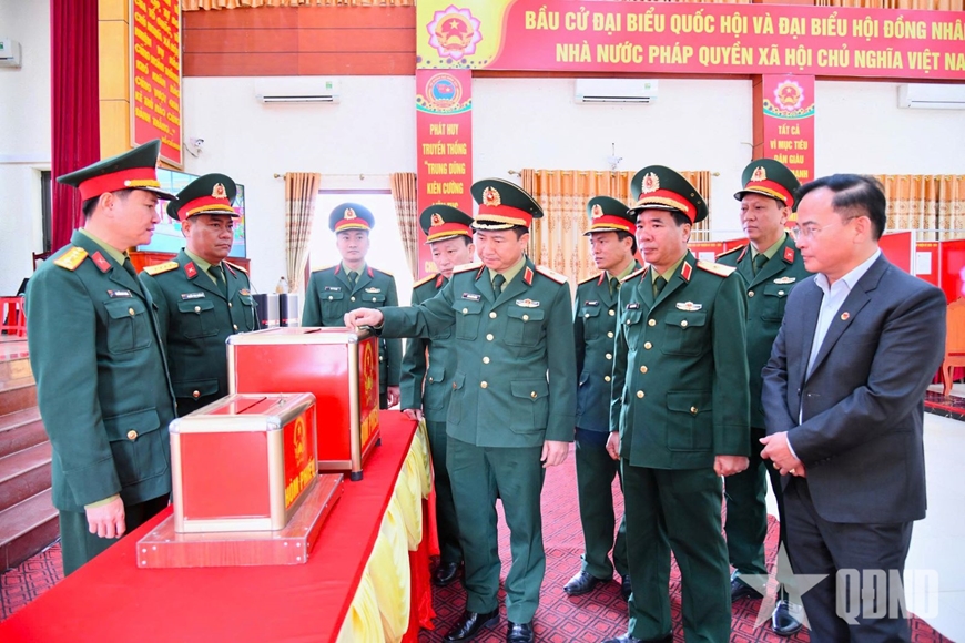 | Đoàn công tác kiểm tra công tác chuẩn bị bầu cử đại biểu Quốc hội khóa XVI và đại biểu Hội đồng nhân dân các cấp nhiệm kỳ 2026-2031 tại cơ quan Sư đoàn 324 (Khu vực bỏ phiếu số 14 - xã Thuần Trung, tỉnh Nghệ An). |