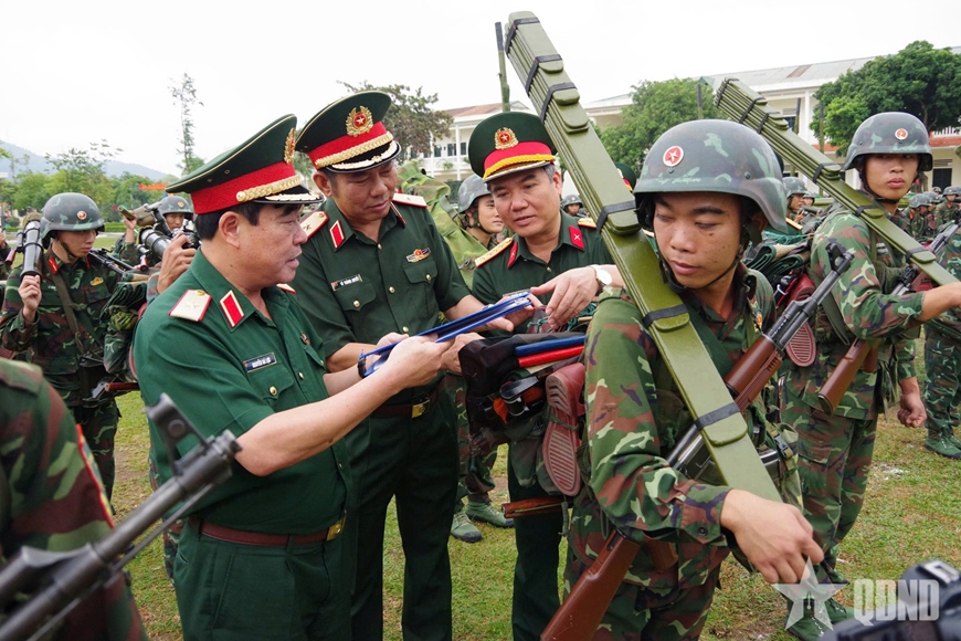 | Thiếu tướng Nguyễn Bá Lực cùng thủ trưởng Bộ tư lệnh Quân khu 3, Sư đoàn 395 kiểm tra công tác SSCĐ của Tiểu đoàn 2. |