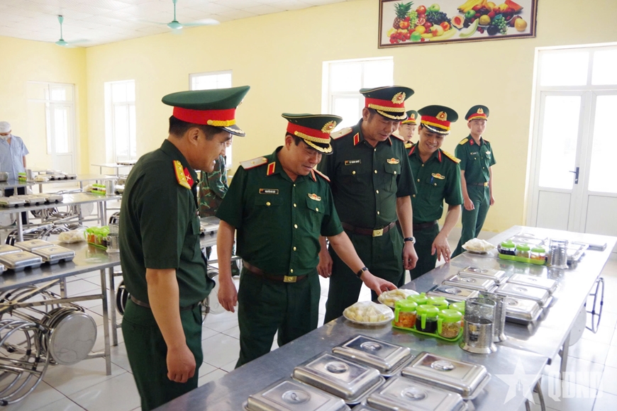 | Thiếu tướng Nguyễn Bá Lực cùng thủ trưởng Bộ tư lệnh Quân khu 3, Sư đoàn 395 kiểm tra công tác bảo đảm chế độ, tiêu chuẩn cho cán bộ, chiến sĩ. |