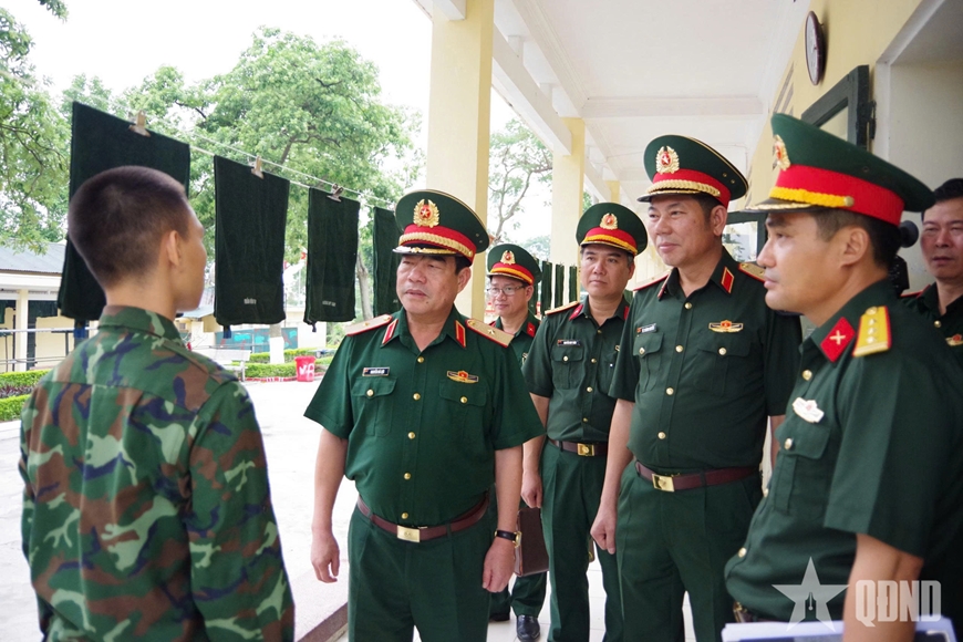 | Thiếu tướng Nguyễn Bá Lực cùng thủ trưởng Bộ tư lệnh Quân khu 3, Sư đoàn 395 kiểm tra nền nếp chính quy tại Tiểu đoàn 1. |