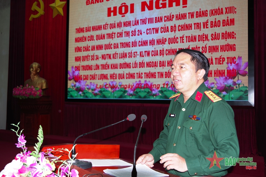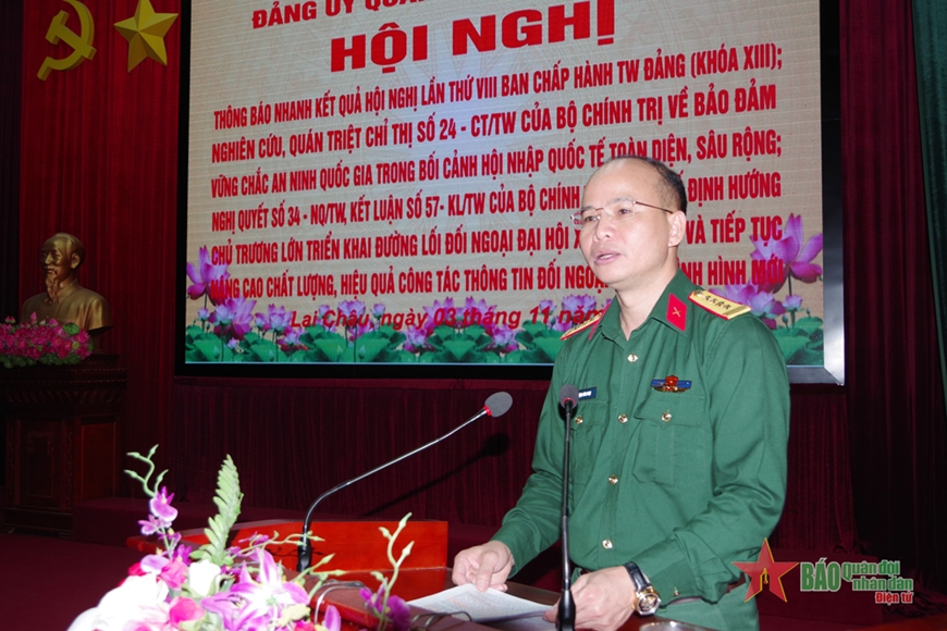 Thay mặt Thường vụ Đảng ủy Quân sự tỉnh Lai Châu, Đại tá Trần Thanh Bình, Phó chính ủy Bộ CHQS tỉnh đã thông báo nhanh kết quả Hội nghị lần thứ tám, Ban Chấp hành Trung ương Đảng khóa XIII.
