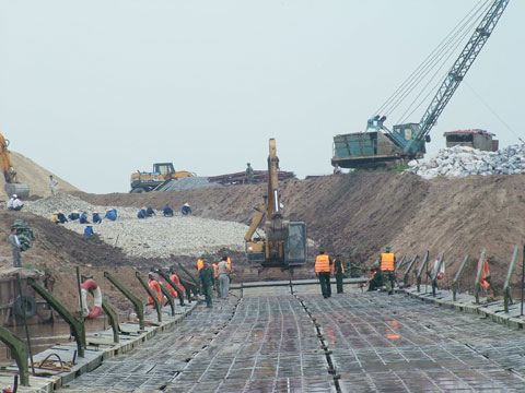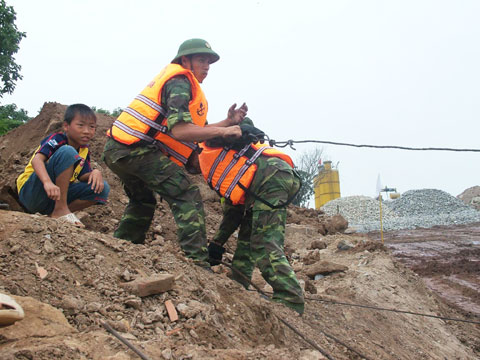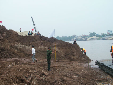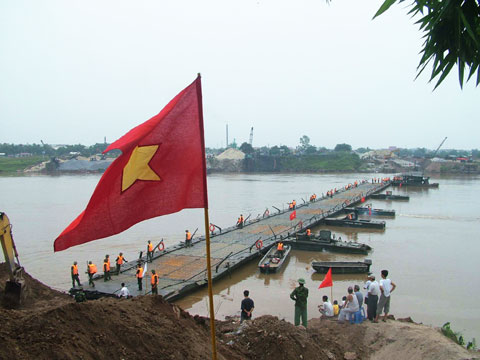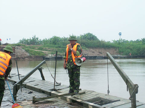 Theo dự kiến, đúng 8 giờ ngày 8-6, cầu phao qua sông Đuống chính thức được đưa vào sử dụng. Đây là lần thứ tư Hà Nội lắp cầu phao để đảm bảo giao thông thông suốt giữa các tỉnh phía Bắc với thủ đô Hà Nội trong những thời điểm cấp bách.