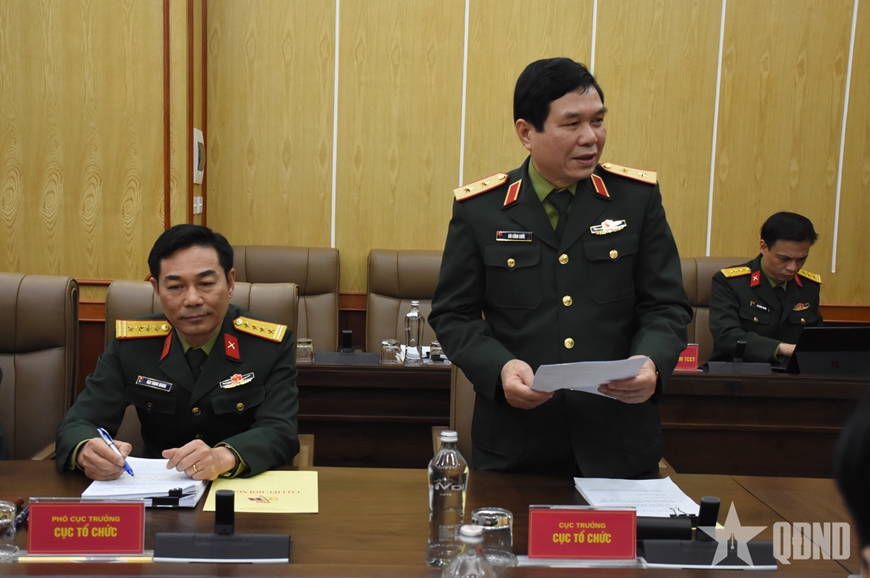 | Trung tướng Bùi Công Chức, Cục trưởng Cục Tổ chức phát biểu tại hội nghị. |