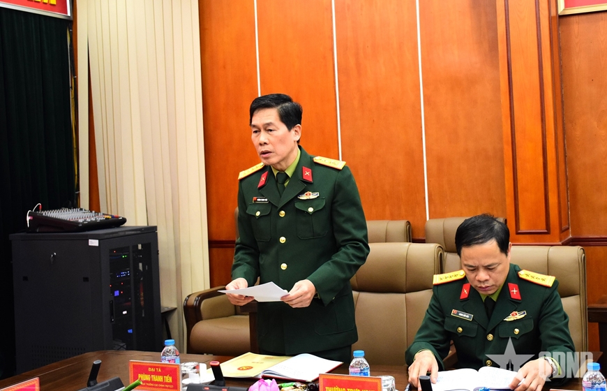 | Lãnh đạo Cục Chính trị báo cáo kết quả thực hiện nhiệm vụ và công tác chuẩn bị đón Tết của đơn vị. |